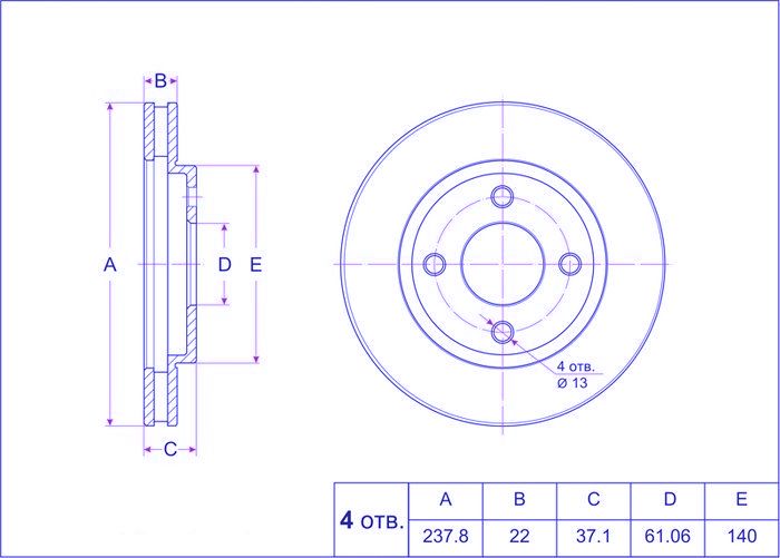Диск тормозной /передний /TI-GUAR для Nissan AD 1999-2008, WINGROAD 1999-2005, MAZDA FAMILIA 1999-2007; 238/22мм; TG-40206-WD200 RN2122V 1N0933251 40206WD200