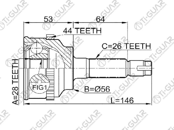ШРУС наружный /TI-GUAR для Mazda Familia 323 1998- BJ8W; 28*56*26; TG-6834Z44; (TG-6834 0510-034A44 MA034A44) FD542560XA FD552550X